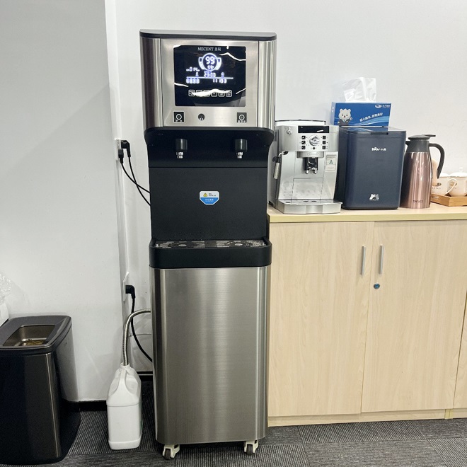 美辰商用直飲機ME205B采用先進的RO反滲透過濾技術,能有效的去除水中泥沙、雜質、異味等有害物質,還有冷熱溫控功能,滿足員工泡咖啡與0泡果茶的需求。